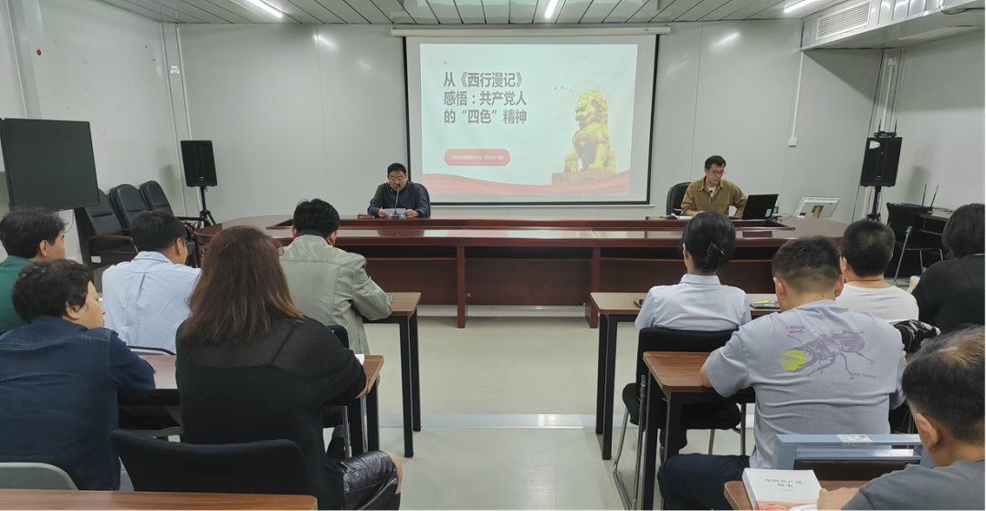 市城市管理委宣讲小组成员刘胜同志、刘昱廷同志,分别以《从西行漫记感悟,共产党人的“四色”精神》、《以天津地标展现党的百年奋斗历程》为题,为公园30余名党员干部职工进行专题宣讲。