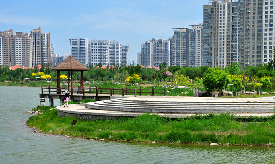 梅江公园二期坐落于天津市西青区,2021年10月建成开放,为封闭式综合公园,开放时间06:20—20:30,东至江湾路,南至海波道,西至梅江西路,北至绥江道。公园总面积约29.84公顷,其中绿地面积14.35万公顷,水体面积10.88公顷。公园设施设备齐全,绿化用植被选用适合北方种植的乔木,园林小品多样,配备游览车、广播、监控设备。