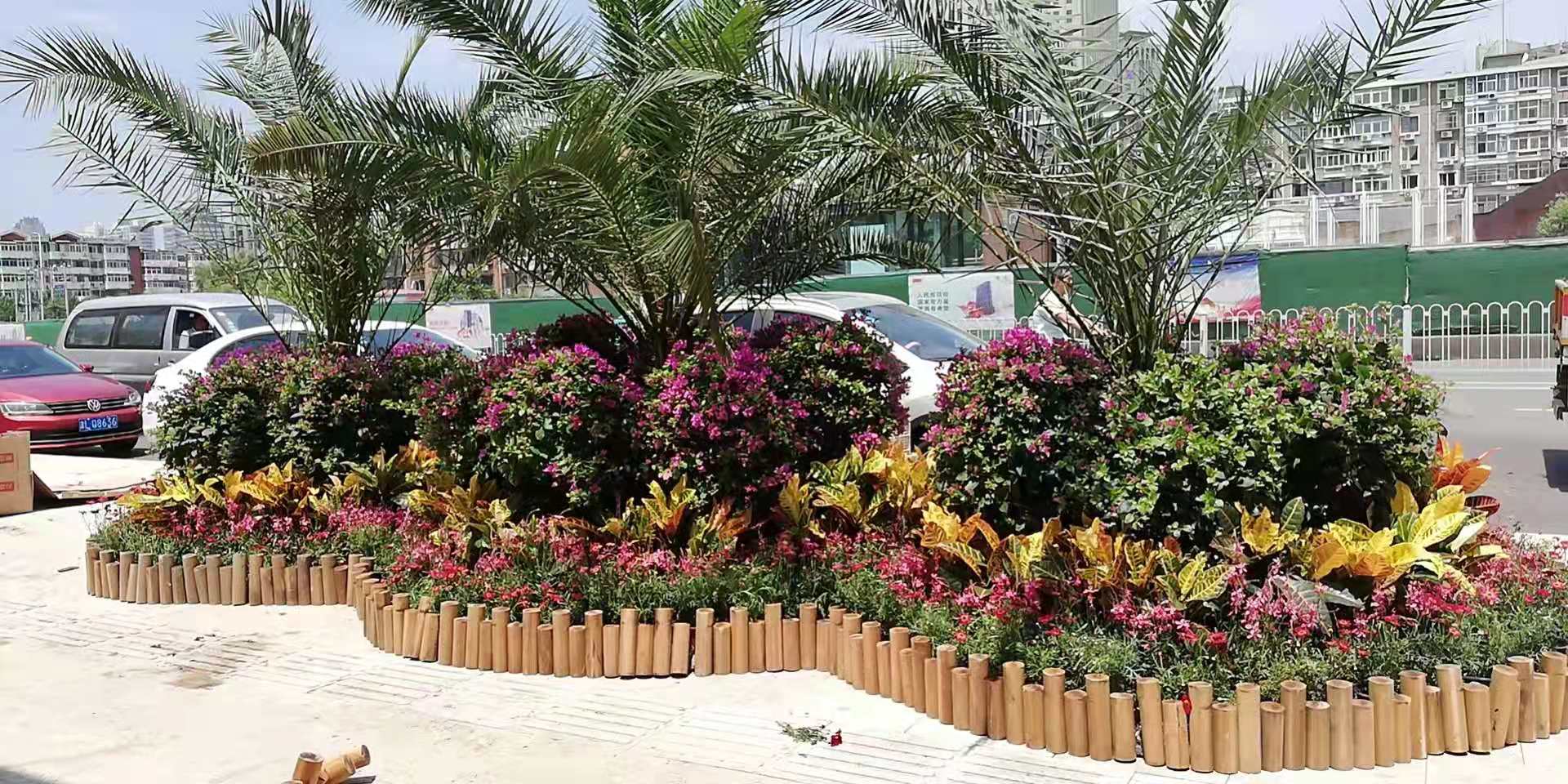 为进一步强化特色、突出亮点,河西区绿化一所在公园绿地常态花卉景观布置基础上,围绕重点区域和重要道路,通过设置花钵、花塔、主题绿化景点等多种形式,着力打造百花齐放、繁华盛世的盛景,其中在友谊公园、迎宾馆、宾水道、南昌路、大沽南路等道路沿线绿地内,栽植世纪红、火炬、彩叶草、夏瑾、金叶薯等共计5420平方米;在友谊路设置花钵105组,栽植太阳花8500株;在宾水道设置花塔60组,栽植大花海棠17000株。从6月14日开始对区委、区政府周边、广东路、乐园道、隆昌路等点位进行摆花布景,选用植物品种包括铁树、槟榔竹、三角梅、变叶木、垂钓牵牛等,共摆放93组。